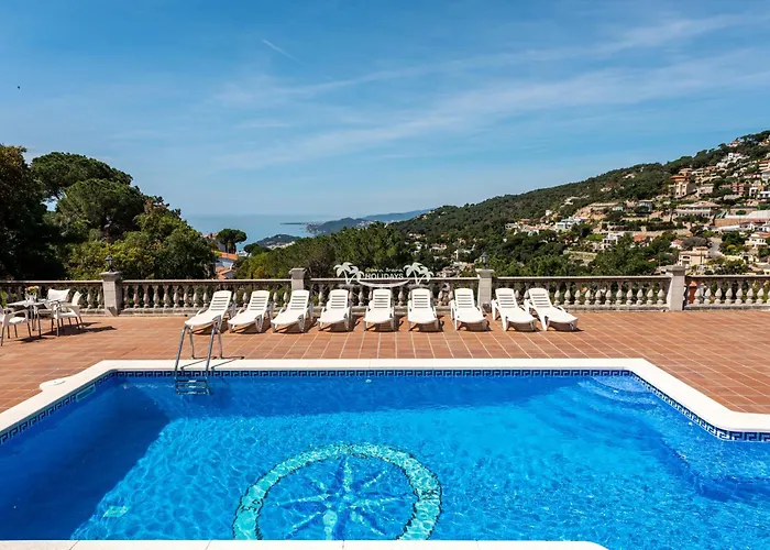 Costa Brava Holidays Villa Mimosa Sea View And Luxe Lloret de Mar с бассейном для отдыха гостей располагается в радиусе 4 км от Старого города. Вилла располагает выходом на террасу и приглашает гостей посетить Гран-казино Коста-Брава менее чем в 10 минутах езды.